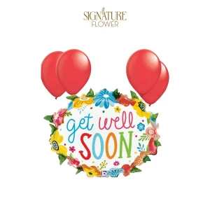 LoonBalloon 25 Inch Get Well Floral Wreath Balloon with 4 Latex Balloons – Elegant Get Well Soon Balloon Set