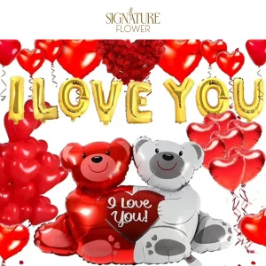 Lockways Romantic Wedding Balloon Set Red Heart I Love You Decoration, Foil Balloons Anniversary Decor