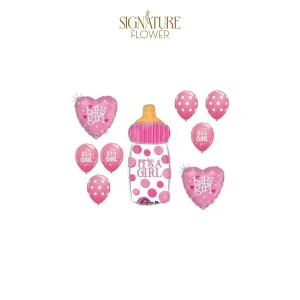 It’s a BABY GIRL Bottle Pink Polka Dot Heart Shower Party Mylar & Latex Balloons