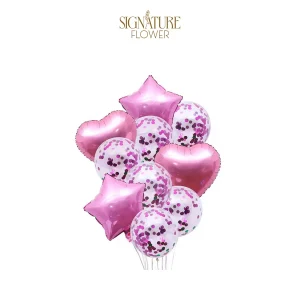 Pink Balloons Set Party Confetti Balloons Heart Stars Balloons Set