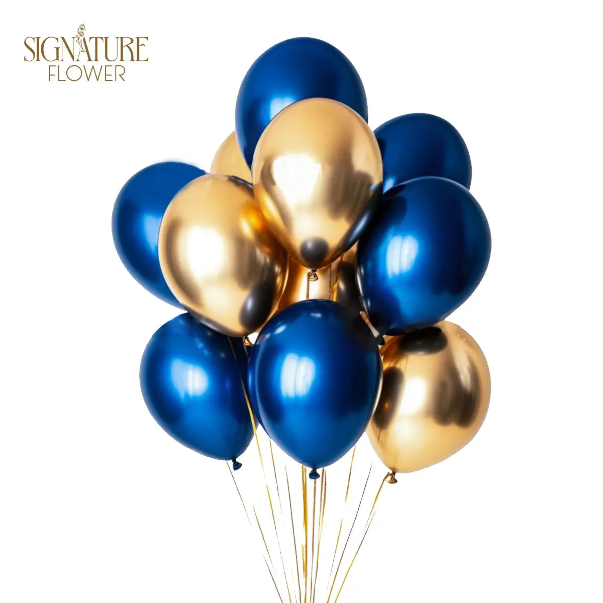 12 blue and gold metallic balloons set for celebrating specially your dad’s day