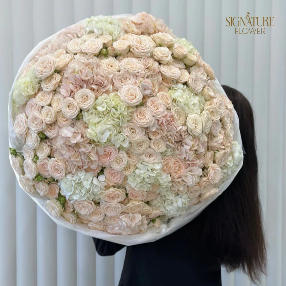 Champagne Bouquet: 100 Spray Roses & Hydrangeas