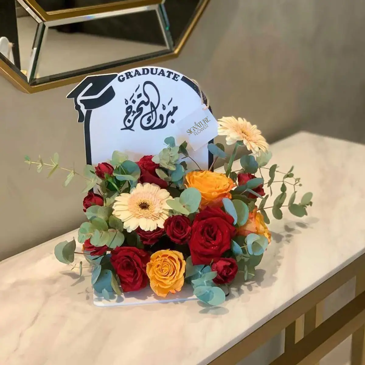 This vibrant arrangement of fiery red and orange roses captures the joyful spirit of Eid. The warm colors symbolize celebration and happiness, making it the perfect holiday gift for family and friends.