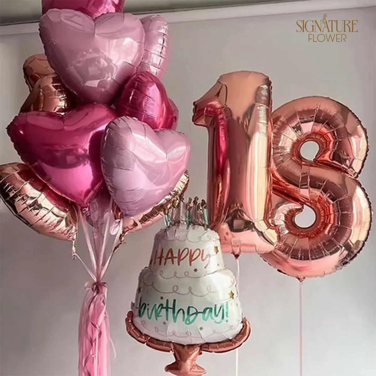 Rose Gold Number Balloons Composition: Personalized birthday balloons Dubai